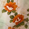 付け下げ 着物リメイク セミロング ワンピース|洗える化繊素材&名古屋帯ベルト橙〜朱橙の椿に白椿、蕾を連ねた白梅 KW-1065