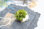 黄緑のダリアとカーネーションのコサージュ 結婚式 卒業式 入学式 グリン 黄緑 フォーマル セレモニー パール 箱入り
