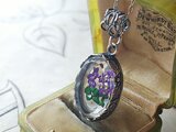 ヴィンテージ Bランク すみれのインタリオ(18×13㎜)花葉アンティークSilverネックレス