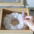 作品を仕上げる際にはガラスの内側・外側についてる花材のカケラは全て取り除いて配送に出します。