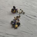 アンティーク風の趣きと、金古美の落ち着いた温もりが魅力のアンティークイヤリングです。深く澄んだ青のビーズと、シックな黒のビーズ、そして小さな星のモチーフを組み合わせ、繊細なデザインに仕上げました。
