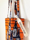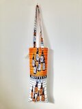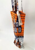 ボトルが並んだデザインのアフリカンファブリックのワインバッグ。