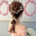 お花やリーフのチャームとパールを一緒にワイヤーで丁寧に紡いだ小枝ヘアアクセサリー。