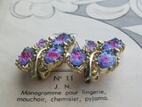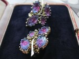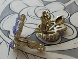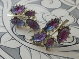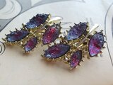 1950-60年代のヴィンテージ、沢山の青と紫のギヴレGlassが埋め込まれたとても美しいLeafデザインのイヤリングです。