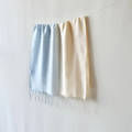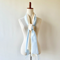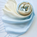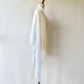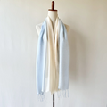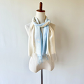 ブルーとオレンジがかった黄色のグラデーションに染めました。これからの季節にぴったりな夕焼け空のような優しい色合いのショールです。