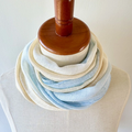 さらウール*WOOLSILK*葡萄色×白色×月白色*手染ウールシルクストール3枚目の購入です。プレゼントも入れたら4枚目。 今回は多色のグラデーションにしました。 色合いが本当に素敵で、多色なのでいろんなお洋服に合うと思います。 価格はお手頃、品質良し、発送早い、3拍子揃っており今回も気持ち良いお取引ができました、