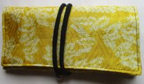 唐桟柄財布 写真より実際の方がいい感じですね、スマホ入れかな?ポーチ(巾着)も付いてて便利そう。和物はなんか落ち着いていいですね、縫製も丁寧で長く使えそうです。