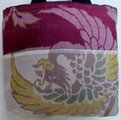 松の木、梅の花、竹の縁起の良い絵柄のお蒲団側の絵絣で作りました。