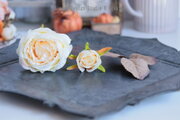 エクリュな薔薇と秋の葉の髪飾り(3点セット) フラメンコ フローレス 花径8cm エクリュ 薔薇 舞台 発表会 頭飾り