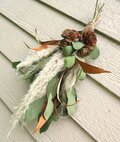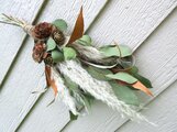 白いパンパスグラスにユーカリの緑、グレビレアゴールドのブラウンを合わせ