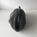 モリオンのビーズを黒糸で編み込んで、口金も黒にすることで、だたの真っ黒ではない黒のがま口が出来上がりました。