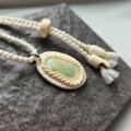 運命を感じました、これは私の元に来てくださる羽根なのだと。優しい白一色で、羽根はもちろんのこと、長さ調節のビーズも先端のちいさなふたつのビーズも本当に美しいです。経年変化も愉しんで、永く大切な御守りにさせていただきたいと思っています。この度は素敵な作品をお譲りいただき、本当にありがとうございました*