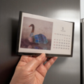 カレンダーを入れて金属製のデスクや冷蔵庫、マグネット使用が出来る場所に飾って頂けます。