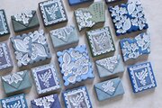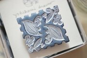 草花をモチーフに消しゴムはんこを彫り、はんこを陶土に捺しつけて凹凸の模様をつけたブローチです。