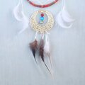 レッドとグリーングラデーションの輪と白とブラウンの羽根の組み合わせがクールなドリームキャッチャーです。
