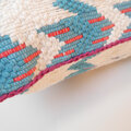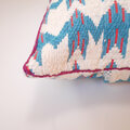ガラ紡という古い機械でゆっくり紡がれた手紡ぎ風のオーガニックコットンの糸と、超長綿でやわらかく艶のあるスーピマ綿の糸で手織りした厚手のクッションカバー。(細い止め糸はどちらでもない綿糸です。)