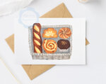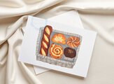 苺タルトとトーストいろいろとパンかごのカード、どれもかわいくておいしそう! ギフト仕様にして下さりありがとうございました♪ 食いしん坊の友だちにプレゼントするのが今から楽しみです♪