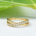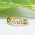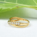 しなやかなクロスラインが、指元に優雅な輝きを添えるダイヤモンドリング。