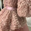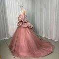 実例写真!カラードレス ピンク パフスリーブ 可愛い プリンセスライン もこもこドレス 編み上げ 花嫁
