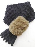 マフラー ファー ブラック カーキ ショートマフラー 手編み 編み物 編み