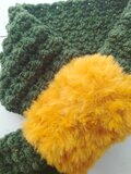 ファーを編みつけた手編みのマフラーになります!