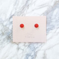 温かみのあるレッドが美しい珊瑚のシンプルなプチピアスです。