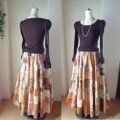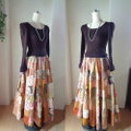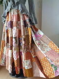 パッチワークスカート 大人可愛い ギャザースカート ロングスカート フレアスカート ティアード ティアードスカート ティアードギャザースカート マキシ丈 ワンピース チェック 花柄 ストライプ YUWA 水玉 ドット カラフル 春夏 秋冬 パリ ロマンティック ゆったり サイズフリー ブラウン ベージュ グリーン オレンジ 秋色 ロングシーズン対応可能 ボリュームスカート ボリューミー ご褒美 1点もの アート 着るアート アートを纏う 美しいスカート 誰ともかぶらない 大人ガーリー