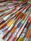 以前から、気になって拝見してましたが、今回思いきって購入させて頂きました。ウエストサイズ調整ありがとうございます。一つ一つのパッチワークが丁寧で、大事に着たいです。少し派手かなとも思いましたが、色々な彩度の布の集合体なので、グレー、ベージュ、茶等、色々あててみましたが、楽しく組み合わせられそうです。