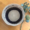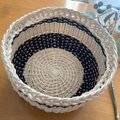 天然ラタン、黒く染色した竹皮を使って作られた小物入れです。