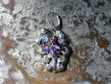 ラオ族蝶型oldシルバーとたわわなアメジスト&ハーキマーダイヤモンド、アクアマリン、インドシルバー鈴の片耳ピアス