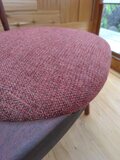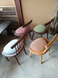ぷっくりと厚みのあるクッションシートに、ほっこりと丸みのある作りの少し小さな椅子です。
