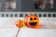 ガラスで制作したジャックオランタン、かぼちゃです。