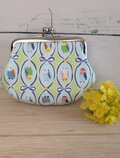 カラフルで愛らしいインコが並んだ、ぷっくりと可愛いがま口ポーチです。