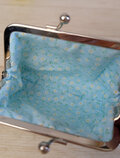 表地、裏布ともに綿ブロード。表地のインコの背景に合わせて水色の小花模様を選びました。