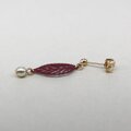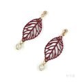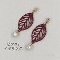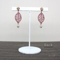 紅葉した木の葉モチーフの繊細な透かしパーツとパールビーズを組み合わせたスタッドピアス。