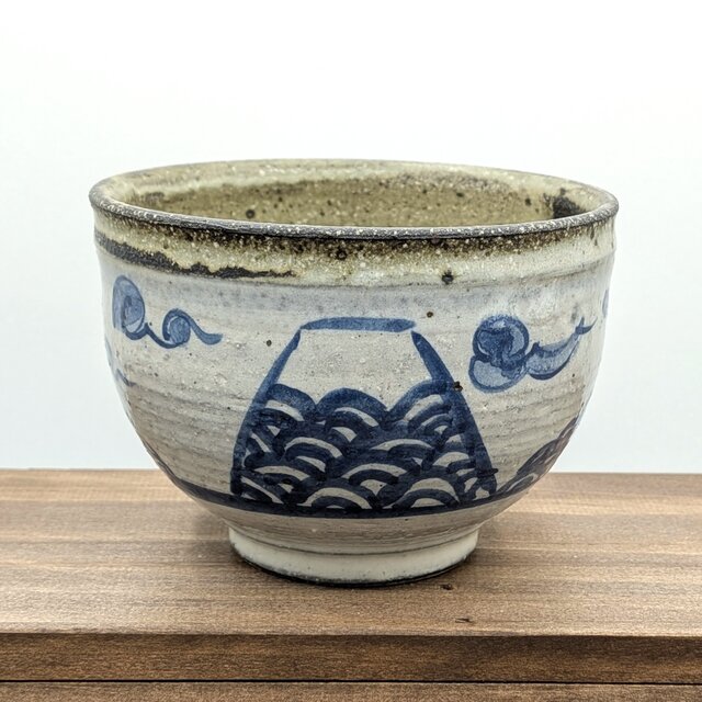 縁起の良い 富士山に青海波 雲 波 うさぎの染付絵付け