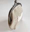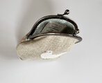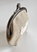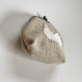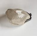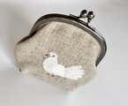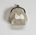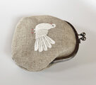 リネンに白いクジャクバトの刺繍をしました。