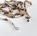 カフェオレ色のチューブ型マザーオブパールと交互に組んだデザイン。