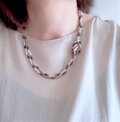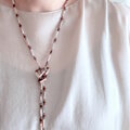 3種の異素材を組み合わせた、クラッシックモダンな 細身のロングネックレスを