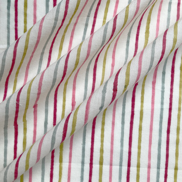 インド ブロックプリント生地 [50cm単位切売] サンガネリ マルチストライプ ピンク系 MT IF0345