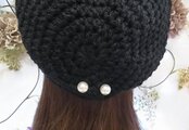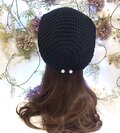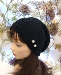 ニット帽 ビーニー ワッチキャップ パールブローチ付き ブラック