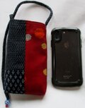 8383 絣と花柄の着物で作ったスマホポーチ#送料無料