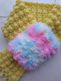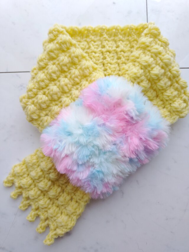 マフラー バタフライ 花 柄 模様 カラフル グラデーション パステルカラー 手編み 編み物 編み無事到着しました。 淡い綺麗な色が、いくつも重なり、とても素敵なマフラーです。 寒くなってきましたら、大事に使いたいと思います。