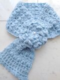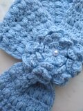 【今年の新作】マフラー お花 コサージュ ショートマフラー ループマフラー パール ブルー 薄い青 手編み 編み物 編み