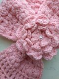 【今年の新作】マフラー お花 コサージュ ショートマフラー ループマフラー 薄い 淡い ピンク 手編み 編み物 編み