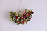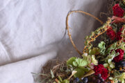 実りの秋。森を散歩しながら、秋色の実やお花を花籠に摘んだような花飾りです。