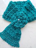 【今年の新作】マフラー お花 コサージュ ショートマフラー ループマフラー ラメグリーン 手編み 編み物 編み