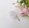 透明感あふれるクリアのチェコガラスボタンに、オーロラの輝きをまとわせた帯留め/ポニーフックです。