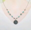 チェコの伝統的なガラスボタンを主役に、ターコイズとチェコビーズを組み合わせたネックレスです。