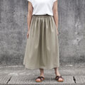 さらりとしたリネンと、柔らかな綿を混紡したコットンリネンのスカート。ナチュラルな風合いが魅力的です。